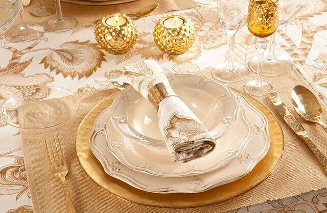 Altra accoppiata vincente è bordeaux–argento scintillante. Il tutto impreziosito da dettagli di stile come maxi fiocchi o singolari portatovaglioli. Sempre classico e cool, infine, il minimalismo chic garantito da bianco e oro cui si aggiunge la rassicurante eleganza del panna. A completare il tutto: cristalli e candele o luci discrete per una tavola che diventa vera protagonista di stile.