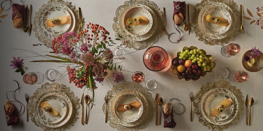 Se il rosso è sempre in voga, che sia auduce. Via libera anche al bordeaux accostato spesso al verde e alle nuances neutre. Il vero trend 2025, nella moda casa come nelle passerelle, sono però tutte le sfumature del marrone: dal beige al testa di moro con qualche pennellata di pesca. Accanto ai toni caldi, una ventata di freschezza invernale che sferza con sfumature di blu. Altro colore protagonista è l’ intramontabile panna che si combina perfettamente con l’altro must del Natale: l’oro.