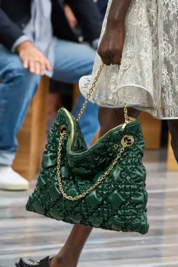 9) ACCESSORI: Borse strutturate con tracolle e manici gioiello, scarpe con punta a mandorla, slingback e gioielli ispirati alla natura. La tendenza accessori primavera estate 2026 è un tripudio di decori che abbagliano. E convincono.